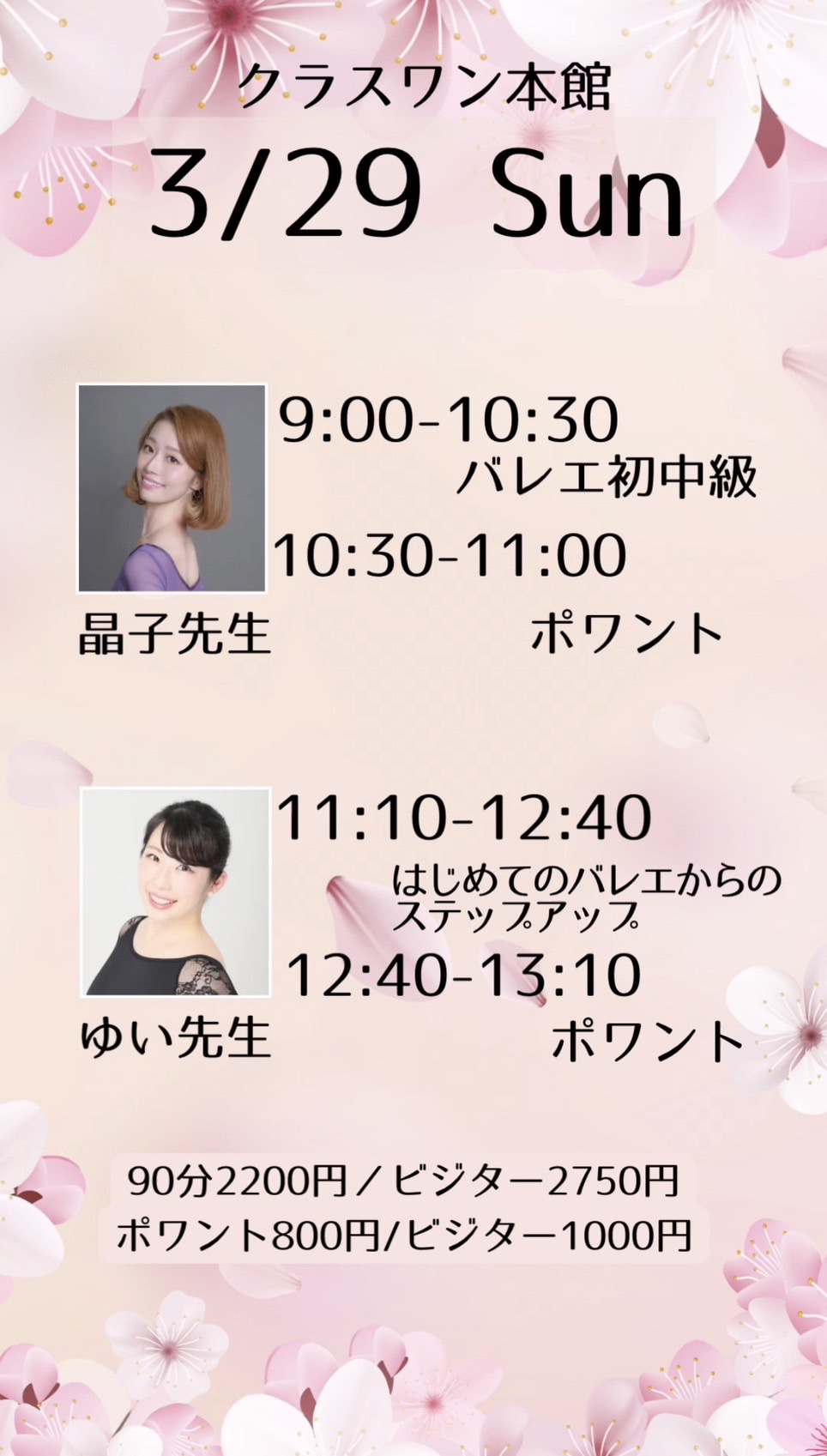 充実した休日となるよう豪華講師陣がレッスンを開催します💕